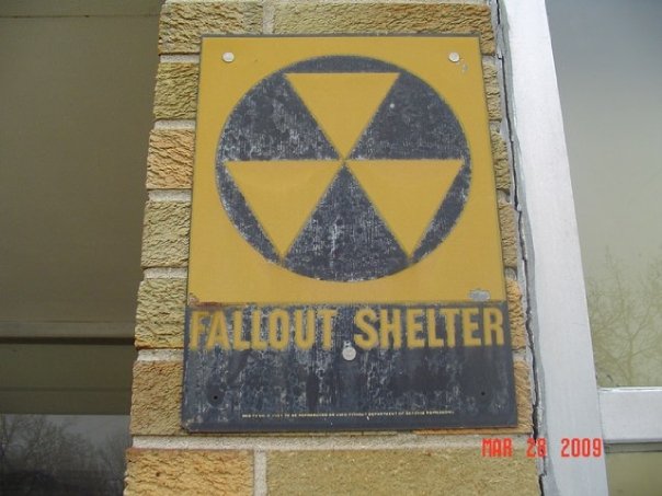 The Fallout Shelter Sign is a sign of the past that is slowly disappearing from our urban setting. The sign marks the locations that would shelter 50 persons or more incase of a nuclear attack. The attacker at the time was the USSR and the US was full of fear. The Cold War was started shortly after WWII as the nuclear capabilities on both side continued to grow. The Department of Defense came up with the Fallout Shelter program in 1961. This sign was posted on thousand of building from schools, to churches to public buildings. Supplies where placed in the basements of these building to help those who survived if the worst ever happened. Thankfully the worst did not happen at the time. The program was designed by Robert W. Blakeley, Blair, Inc and Bob Schoonover.